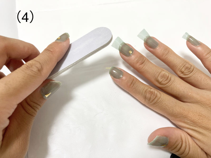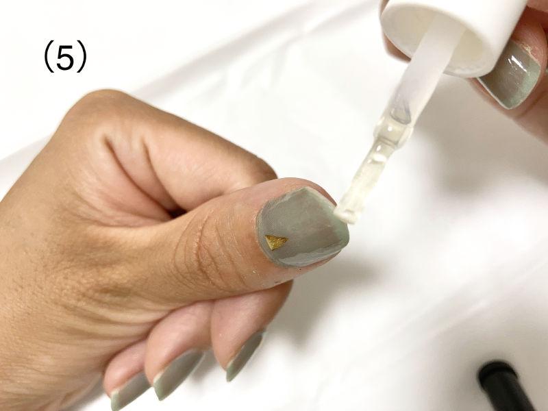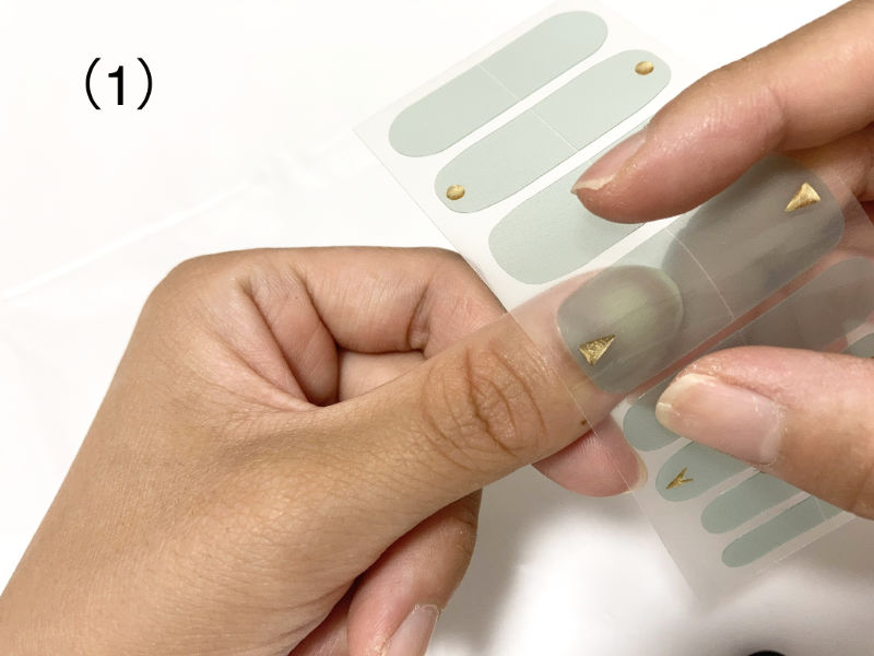 (2) Peal off the sealer and put it straight 1mm inside of cuticle.