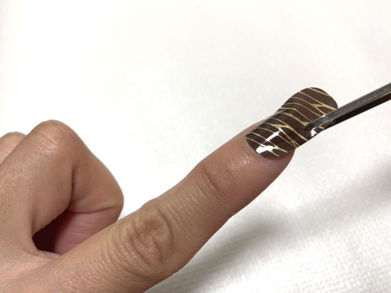 (2) Peal off the sealer and put it straight 1mm inside of cuticle.