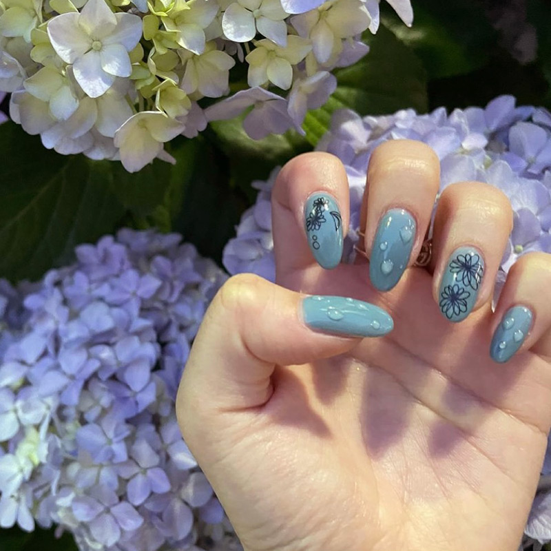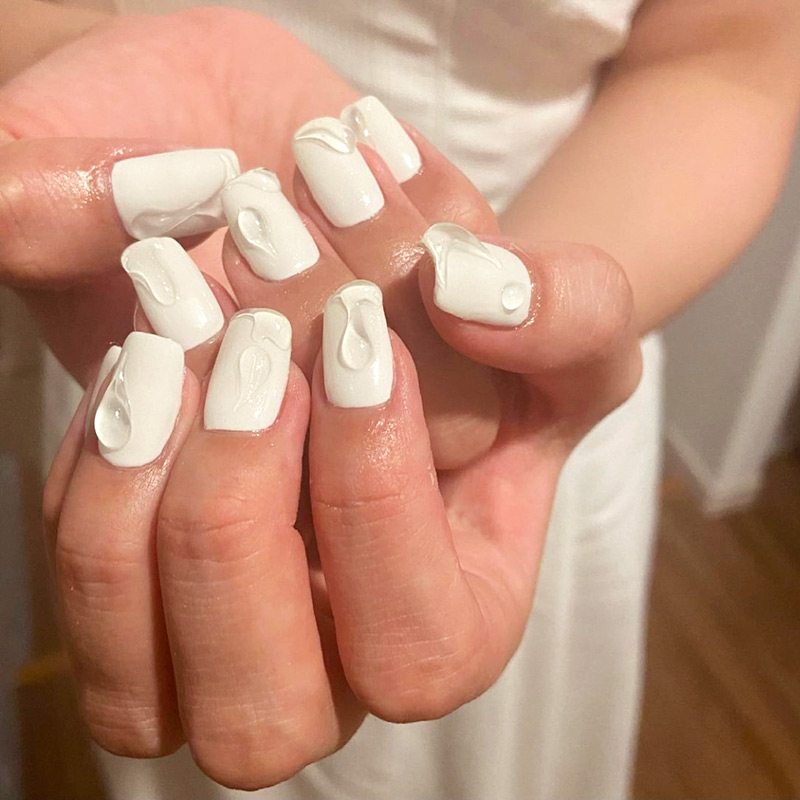 As you imagine with “water”, drops of water made of transparent gel nails are on your nails, which make your nails juicy and catchy. “Water nail” basically goes well with any colors no matter what season it is. Combining it with summer designs can be more fashionable in this coming season.